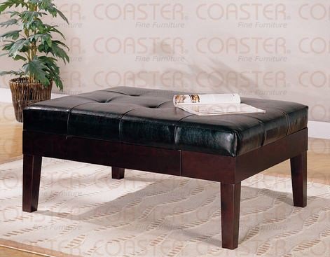 - Ottoman with Tufted Accents in Black Leather Like Vinyl