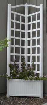21in x 65in x 21in. This durable, V-shaped corner trellis is made of white PVC. It will never need paint, won't turn yellow in the sun, won't crack, fade, chip, peel, or rot. It features a 20 year warranty and cleans easily with soap and water. The Oxford Trellis measures 21" wide x 65" high x 21" deep to display your bright flowers and climbing vines tall and wide. This trellis may be used independently or in conjunction with the Corner Slat Planter (sold separately). Read more...
