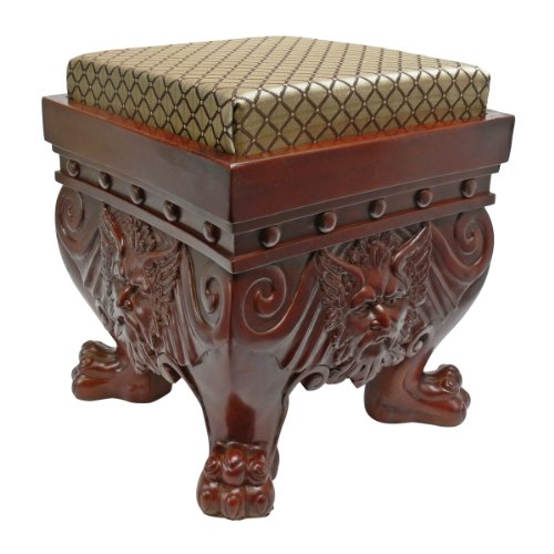 Resplendent with Jacobean-style hand-carving, stylized Greenmen ring the perimeter of this functional stool, sure to lend medieval style to any decor. Exquisitely sculpted and accented with faux rivets and claw feet, it is cast in quality designer resin and finished in faux mahogany. Our exclusive is topped with a richly colored, deeply padded quality jacquard upholstery for your comfort! 11"Wx11"Dx12"H. 9 lbs. Read more...